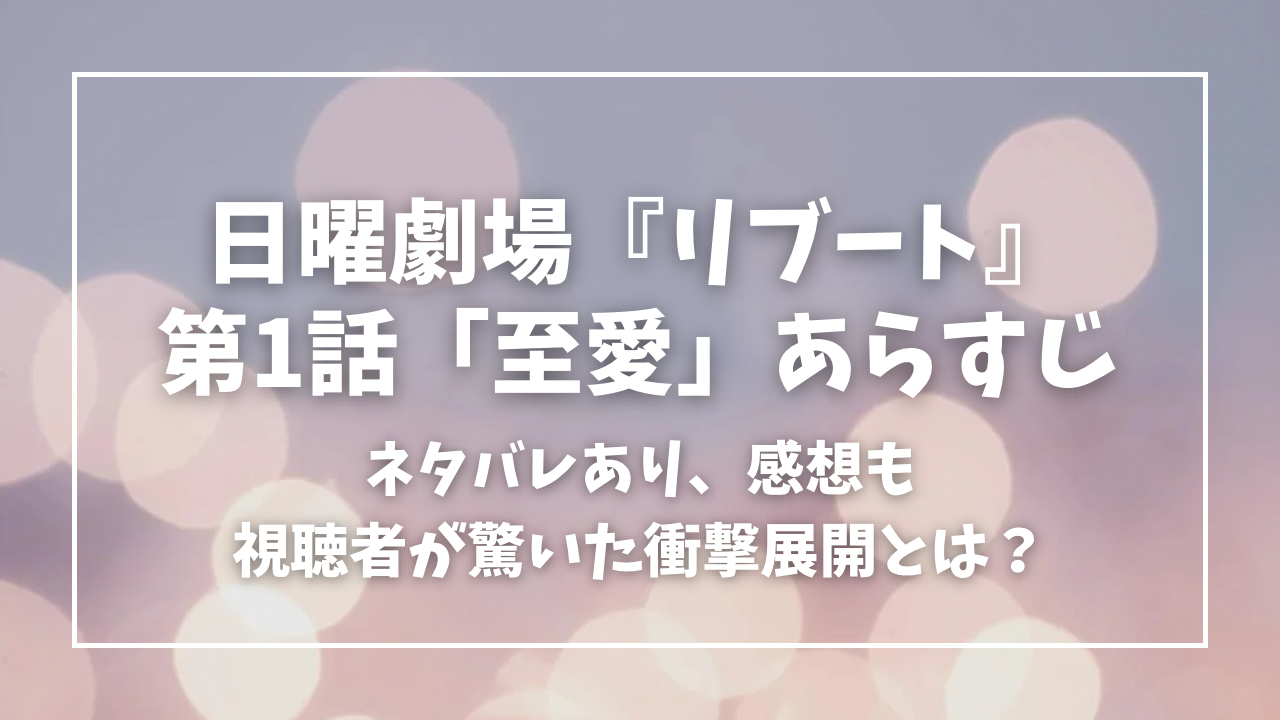 【ネタバレ】日曜劇場『リブート』1話あらすじと衝撃展開まとめ