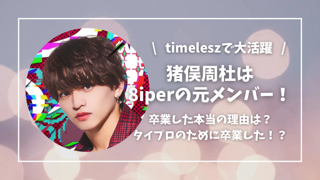 2024年9月よりNetflixにて配信された「timelesz project -AUDITION-」、通称タイプロ。 そのオーデションに見事合格しメンバー入りを果たした猪俣周杜さん。 モデルプレスより引用 実は彼の前職はメンズ地下アイドル「8pier(ハイパー)」のメンバーだった... -